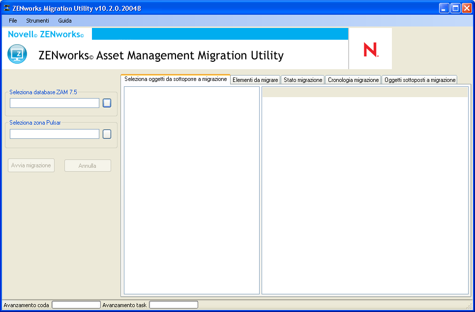 1. Fare clic su Start > Programmi > Novell ZENworks > Utility di migrazione di ZENworks Asset Management.