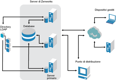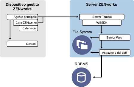 L'architettura tradizionale di ZENworks ha le seguenti caratteristiche: