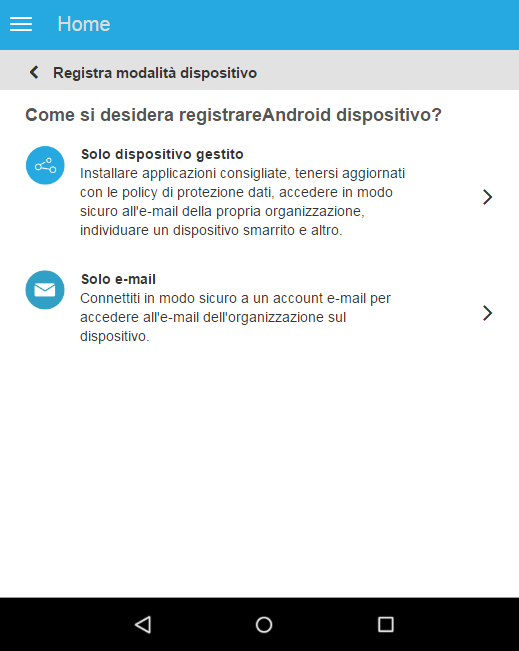 Le opzioni di registrazione sono determinate dalla policy di registrazione dispositivo mobile assegnata all'utente.