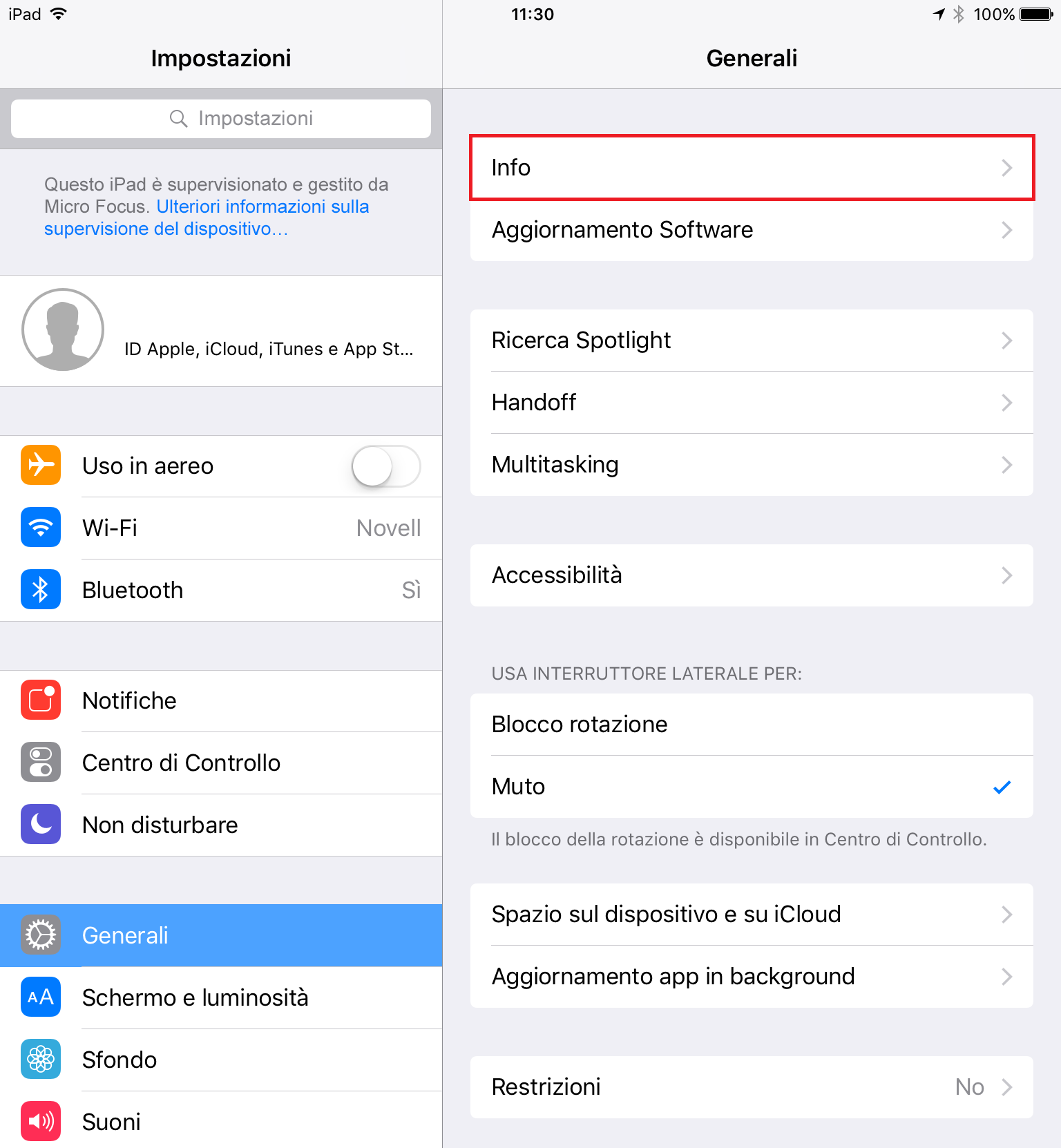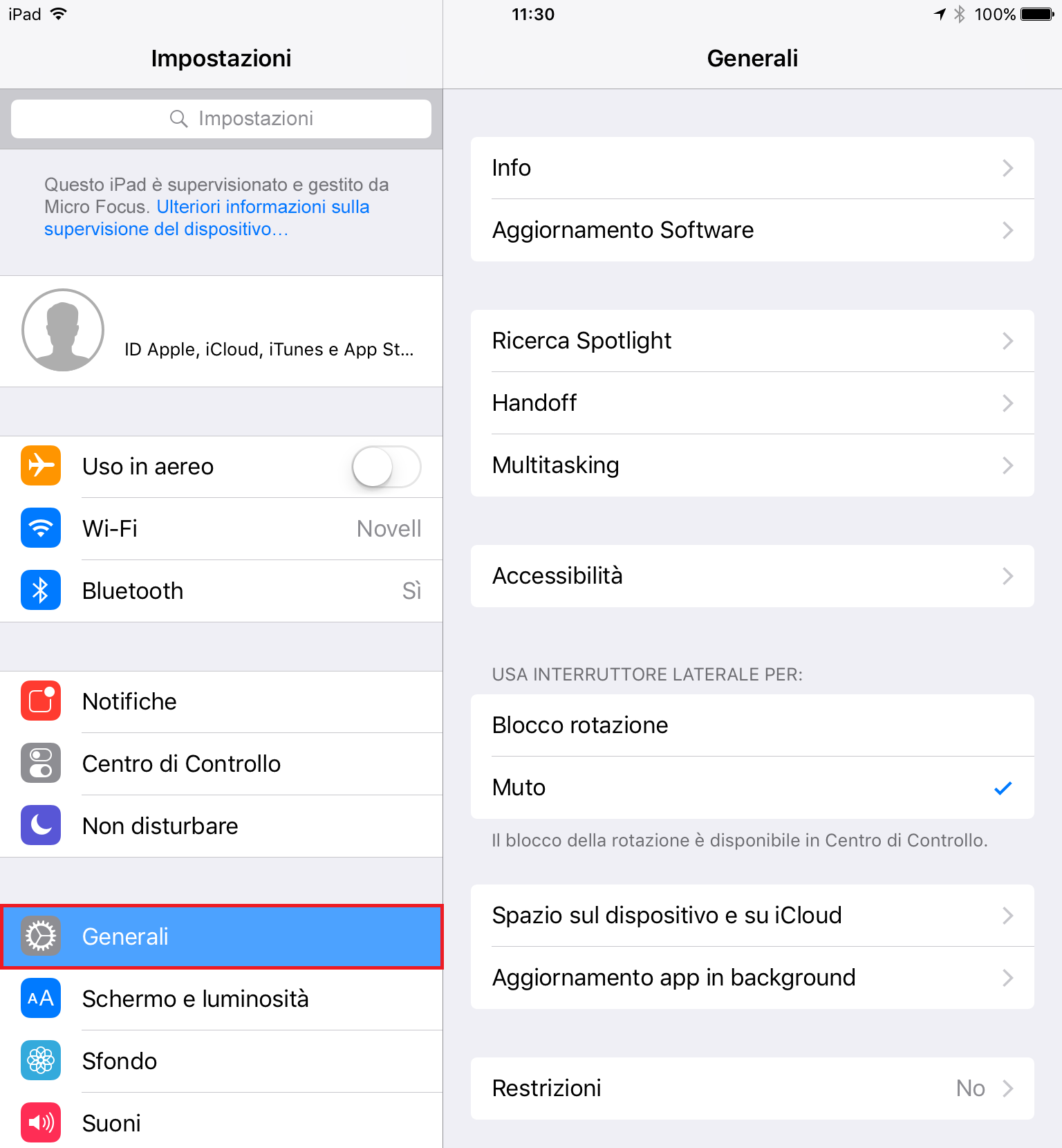 Nel menu del dispositivo individuare Impostazioni e fare clic su Generali.