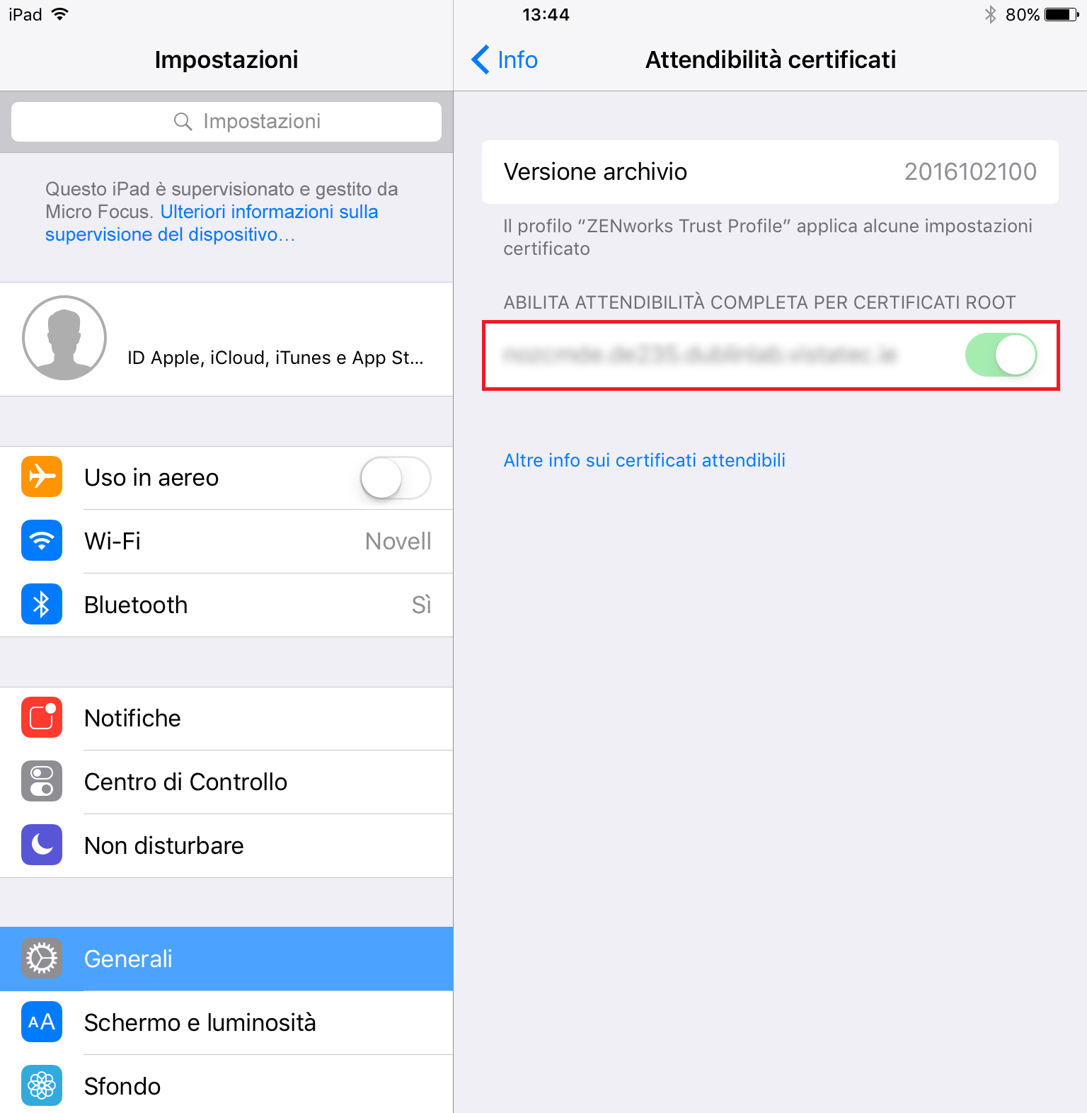 (Condizionale) Abilitare il certificato di registrazione sul dispositivo. Questo passaggio viene visualizzato nei dispositivi sui quali è in esecuzione iOS 10.3 o versioni successive. Per abilitare il certificato:
