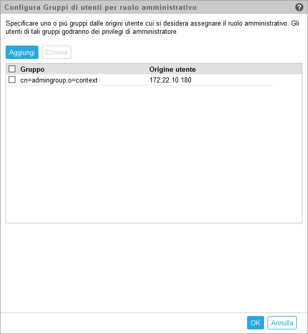Per Active Directory: gli utenti in tali sottogruppi non godranno dei privilegi di amministratore. Per assegnare questi privilegi di amministratore degli utenti, configurarli individualmente.