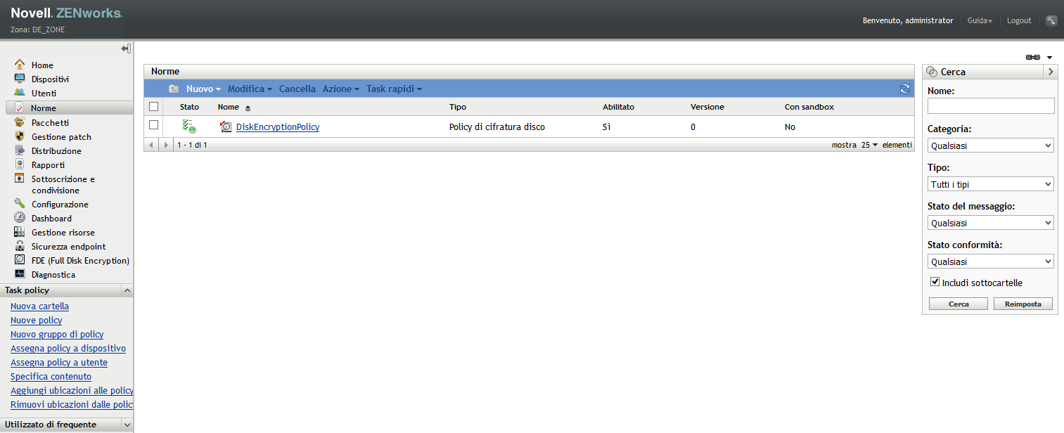 Dopo aver creato una policy di cifratura del disco, è necessario assegnarla ai dispositivi.