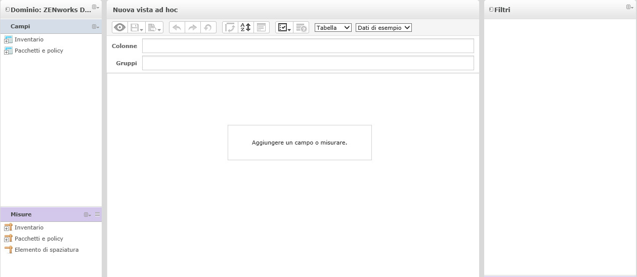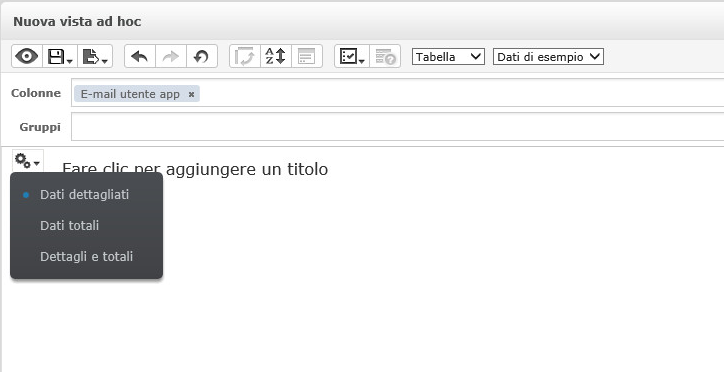 Per la vista tabella, i campi disponibili sono Colonne e Gruppi.