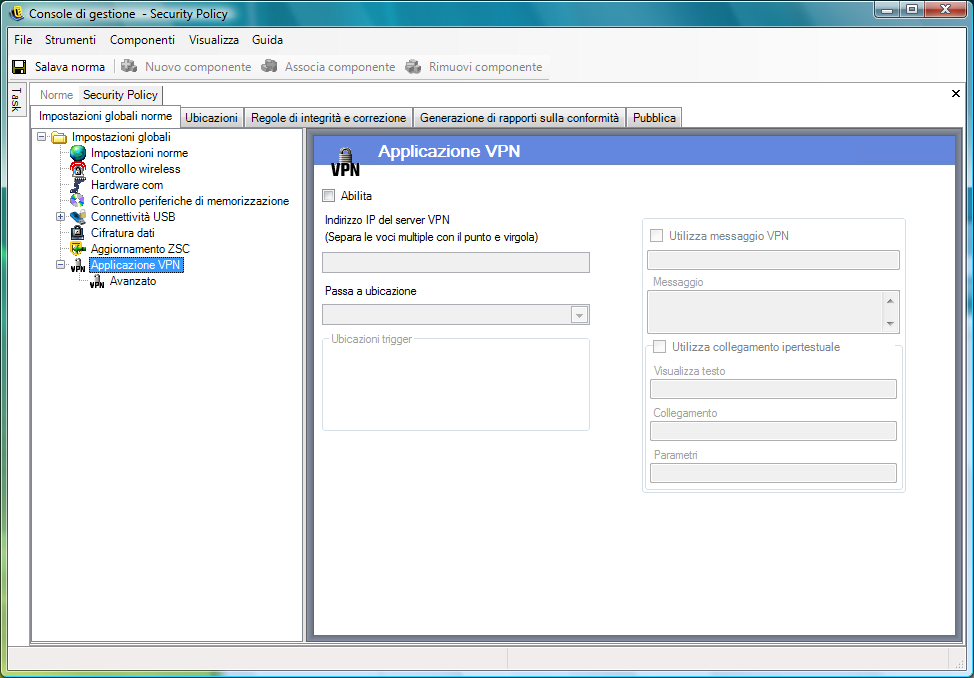Le impostazioni globali vengono applicate alle norme come impostazione di default. Per accedere a questo controllo, andare alla console di gestione e fare clic sulla scheda .
