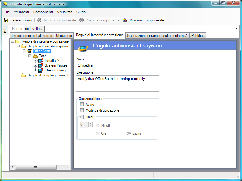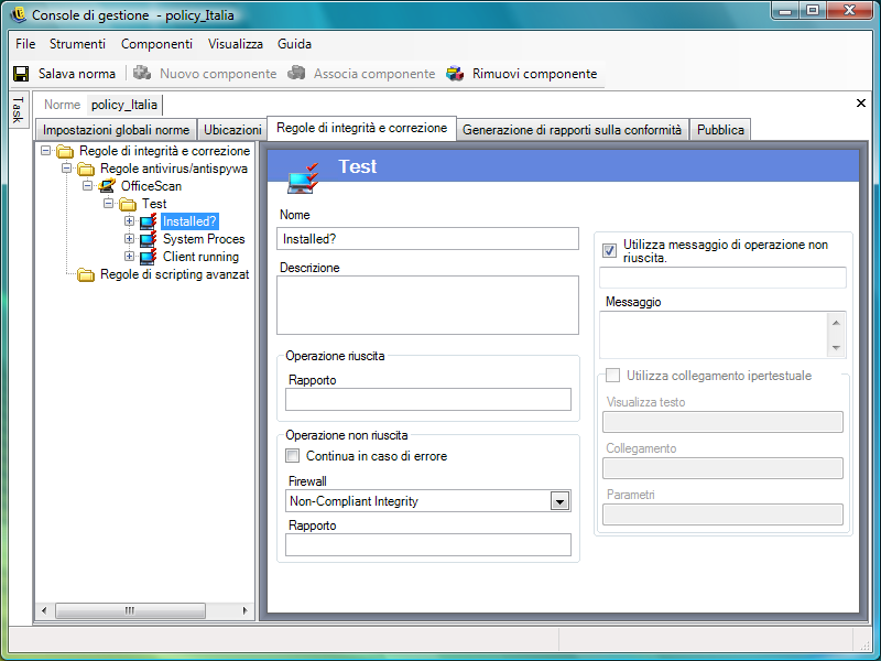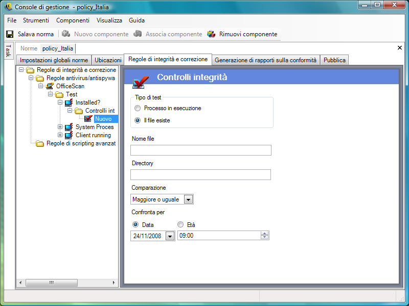 I controlli previsti per ciascun test consentono di determinare se uno o più processi antivirus/antispyware sono in esecuzione o se esistono dei file essenziali. Per l'esecuzione di un test di integrità è necessario definire almeno un controllo.