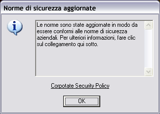Utilizza messaggio di aggiornamento norme: È possibile visualizzare un messaggio utente personalizzato a ogni aggiornamento delle norme. Fare clic sulla casella di controllo, quindi specificare le informazioni sul messaggio nei campi appositi.