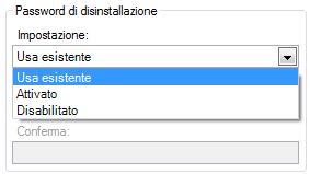 Abilitato: Consente di attivare una password di disinstallazione o di modificarla. Specificare la nuova password e confermarla.