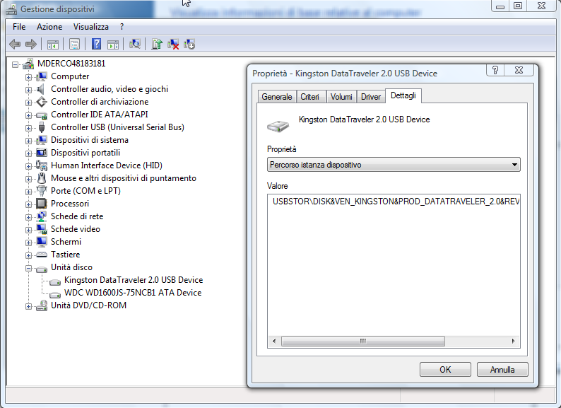 In realtà, il campo relativo al numero di serie USB è univoco solo se oltre ad esso vengono specificati i seguenti campi: Versione USB, ID fornitore, ID prodotto, Dispositivo BCD.