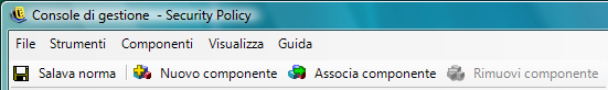 Le norme di sicurezza vengono scritte o modificate spostandosi tra le schede disponibili nella parte superiore della console di gestione e utilizzando l'opzione nell'albero del riquadro sinistro.