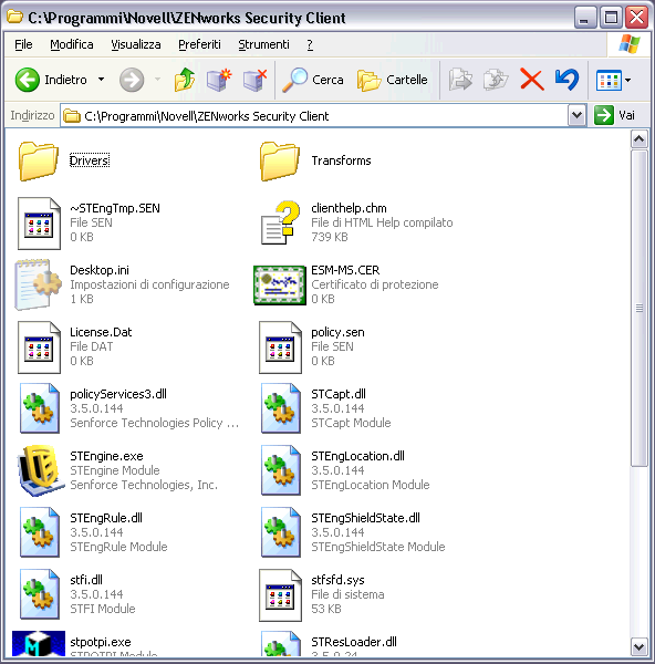 Individuare l'immagine MSI creata e aprire la cartella "\Programmi\Novell\ZENworks Security Client\"