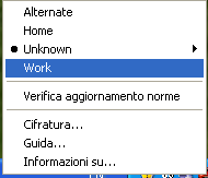 All'avvio, Endpoint Security Client 3.5 attiva l'ubicazione Sconosciuta. Quindi, cerca di rilevare l'ambiente di rete corrente e di modificare l'ubicazione automaticamente. Se l'ambiente di rete non viene riconosciuto o se non è stato preimpostato o salvato (vedere Sezione 3.2.1, Salvataggio di un ambiente di rete), è necessario modificare manualmente l'ubicazione.