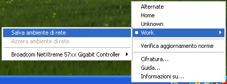 Fare clic con il pulsante destro del mouse sull'icona di , passare il mouse sopra l'ubicazione corrente per visualizzare il sottomenu, quindi scegliere Salva ambiente di rete per salvare l'ambiente.