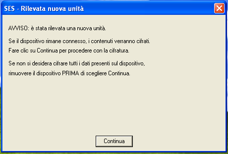 Quando si inserisce un dispositivo di memorizzazione estraibile, viene richiesto di scegliere se cifrare l'unità o se procedere alla sua rimozione senza cifrarne tutti i file.