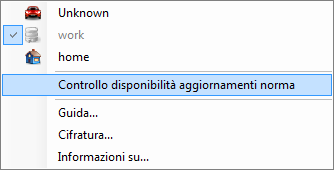 Fare clic con il pulsante destro del mouse sull'icona sulla barra delle applicazioni per visualizzare il menu.