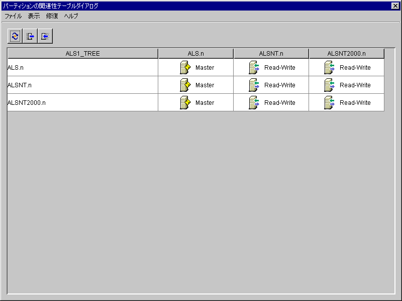 [パーティションの関連性テーブル]から、サーバとサーバが保持するレプリカについての情報を表示できます。