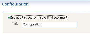 選択したセクションだけのドキュメントを生成して、同僚がそれぞれの部分に関する情報を提供するとします。各セクションおよびその子セクションには、[Include this section in the final document (このセクションを最終ドキュメントに含める)]というチェックボックスがあります。デフォルトでは、このチェックボックスはすべてオンになっています(下図参照)。