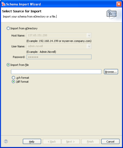 [.ldif format (.ldif形式)]を選択してから[Browse (参照)]をクリックします。
