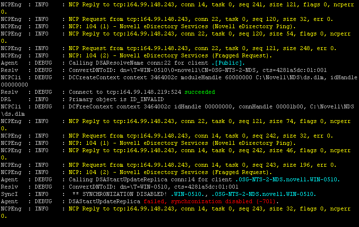 注: 次のコマンドでは、NetWareのndstraceをdstraceに変更します。