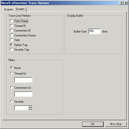 [Novell eDirectoryトレースオプション]ダイアログボックスが表示されます。