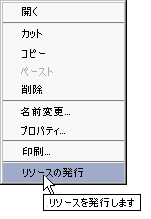 これらの条件が満たされている場合に限り、右クリックするとコンテキストメニューが現れます。その一番下に[発行]コマンドがあります。