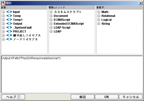 XPath式を取るすべてのComposerダイアログボックスでは、式ビルダのピックリストを使用して式を作成できます(後のECMAScriptを使用して式を作成するを参照)。