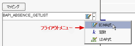 注記: オプションとして、サービスで処理されることが分かっている関数名を右側のリストに手動で入力できます。[マッピング]リストの右端にあるフライアウトメニューを使用して、マップされた値をECMAScriptでプログラム的に、またはLDAPルックアップで決定するボタンを表示させることもできます。