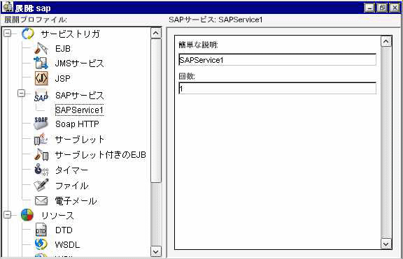 注記: SAPサーバ接続リソースは、通常のSAP接続リソースとは異なります。詳細については、「SAPコンポーネントエディタをお使いになる前に」の「SAPサーバ接続リソースを作成する」の説明を参照してください。