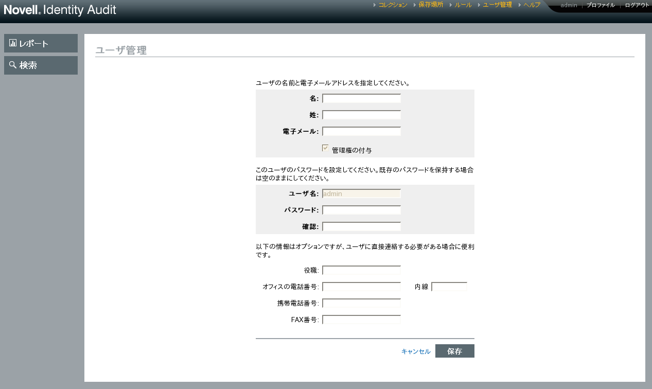 管理者は、システム内のすべてのユーザの情報を編集できます。ユーザは、ユーザ名と管理者ステータスを除き、自分のプロファイルの任意のフィールドを編集できます。また、パスワードを変更することもできます。