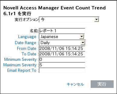 レポートを実行するスケジュールを設定します。レポートを後で実行する場合は、開始時刻を入力する必要があります。