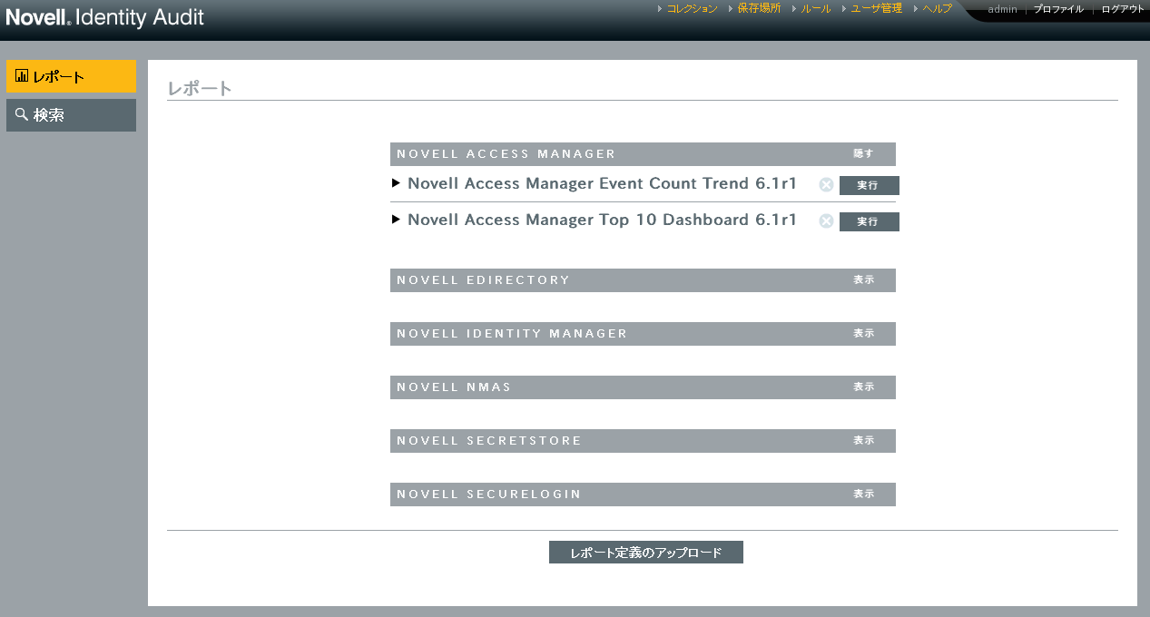 図 1-1 Novell Identity Auditインタフェース(管理者ビュー)