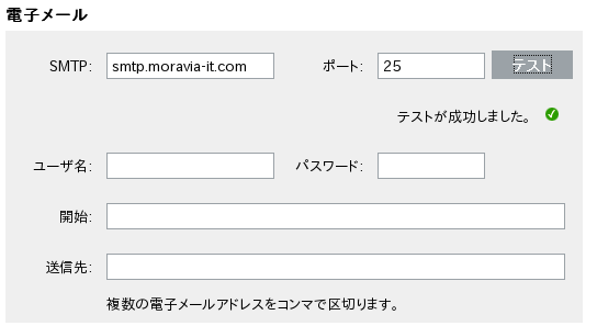 [電子メール]で、使用可能なSMTPリレーの名前とポートを入力します。必要に応じて[テスト]をクリックし、接続をテストします。