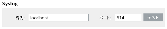 [Syslog]で、名前またはIPアドレスを入力し、Syslogサーバのポートを開きます。必要に応じて[テスト]をクリックし、送信先のサーバとポートが存在するかどうかをテストします。
