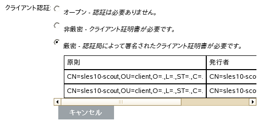 [クライアント認証]の下にある[厳密]オプションを選択します。