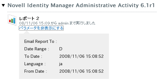 レポートを実行する際に使用された正確な値を確認するには、[パラメータを表示する]をクリックします。
