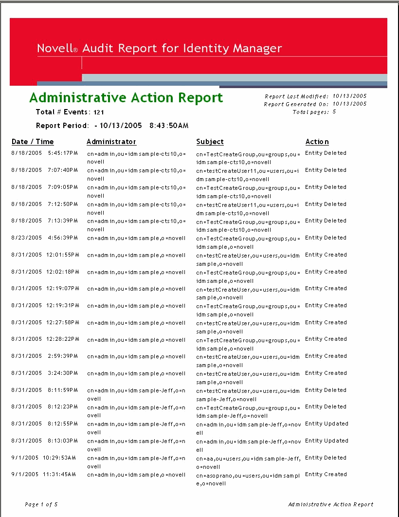 図 C-1 Administrative Action Report (管理アクションレポート)