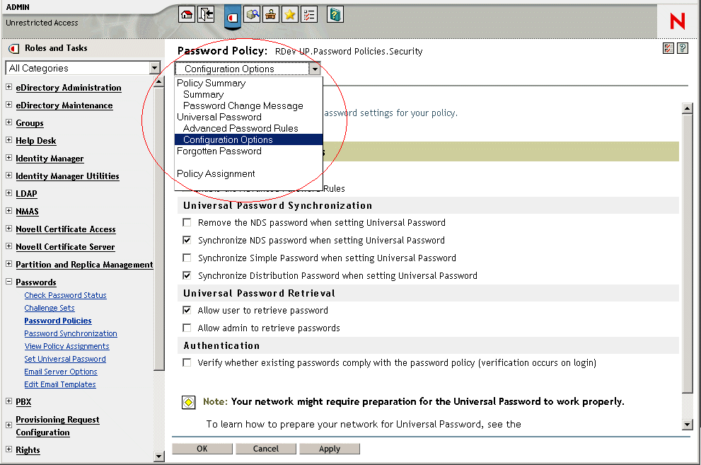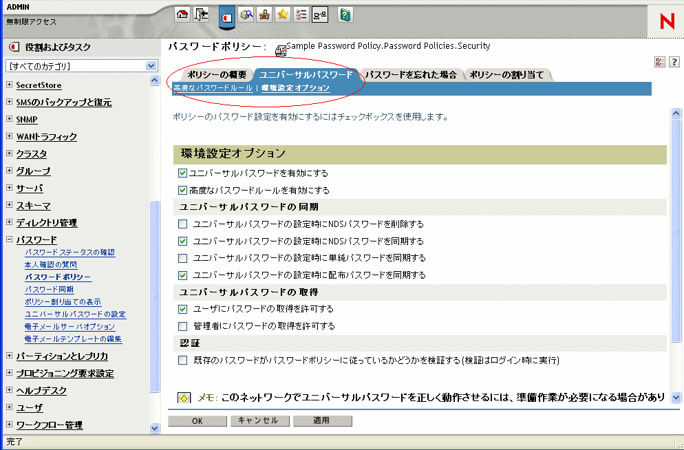 パスワードの同期時にユニバーサルパスワードと配布パスワードを使用する方法については、パスワード同期の実装を参照してください。