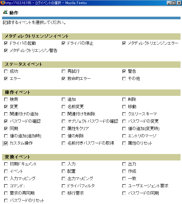 ログを記録するイベントを選択してから、[OK]をクリックします。