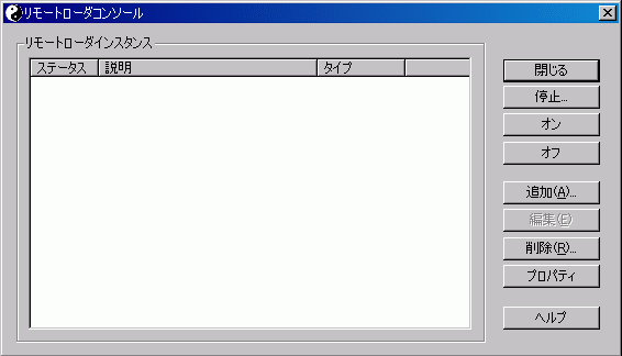 リモートローダコンソールを使用すると、リモートローダサービスの各インスタンスを起動、停止、追加、削除、および編集できます。