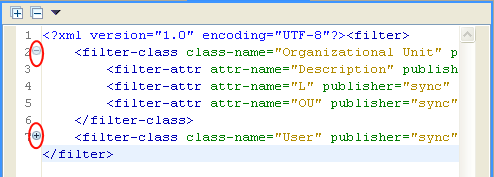 図 6-3 フィルタのXMLのプラスまたはマイナスアイコン