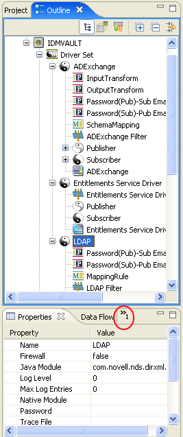 開いているプロジェクトの[Outline (アウトライン)]ビューからドライバオブジェクトを選択します。