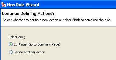 この時点で、追加アクションを定義できます。この例では、アクションは1つだけにします。[続行]を選択し、[次へ]をクリックします。