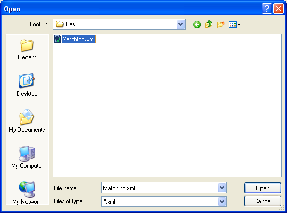 [ファイルタイプ]の下のリストから[*.xml]を選択します。