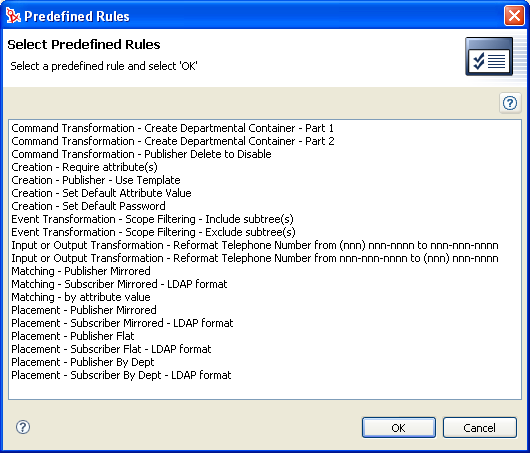 このルールでは、OU属性に格納された値に基づいて、ユーザオブジェクトを適切な部署別コンテナに配置します。配置する必要があり、使用可能なOU属性を持っているユーザオブジェクトの場合は、「uid=一意の名前,ou=OU属性の値,dest-base」に配置されます。