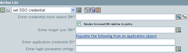 [SSO資格情報の設定]アクションは、ユーザオブジェクトの作成またはパスワードの変更が実施されるときの、SSO資格情報を設定できるようにします。