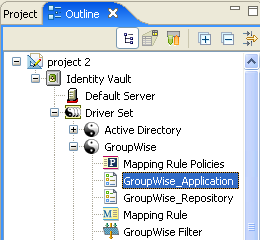 アウトラインビューで、アプリケーションオブジェクトを格納するドライバオブジェクトを右クリックします。
