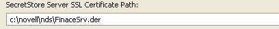 SecretStoreサーバからエクスポートされるSSL証明書へのフルパスを指定します。このパスには証明書名を含め、Identity Managerサーバのローカルに配置する必要があります。ワークシート項目の6)を参照してください。