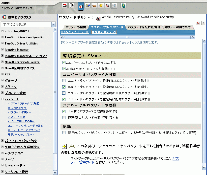 パスワードの同期時にユニバーサルパスワードと配布パスワードを使用する方法については、パスワード同期の実装を参照してください。