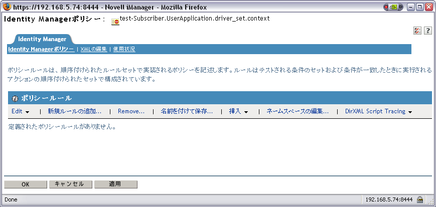 iManagerの画面に、定義されているポリシールールが表示されます。