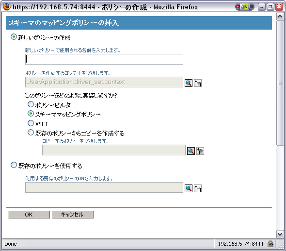 をクリックして、スキーマのリフレッシュメッセージを閉じます。[Identity Manager Policy]ダイアログ\'83\'7bックスに戻ります。